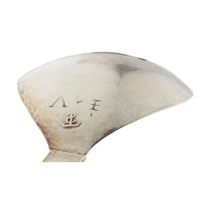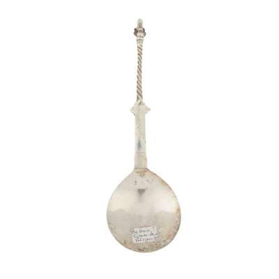 Tijmen de Sheppen, c.1656, with cast and vacant shield finials above a two-stage wrythen and cast stem with bird, mask and foliate decoration above a circular bowl, engraved to reverse ‘I*V’, marked to reverse of bowl