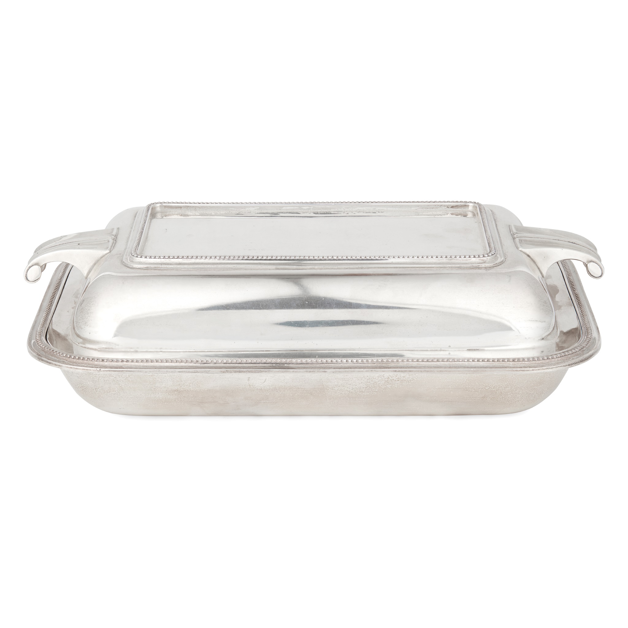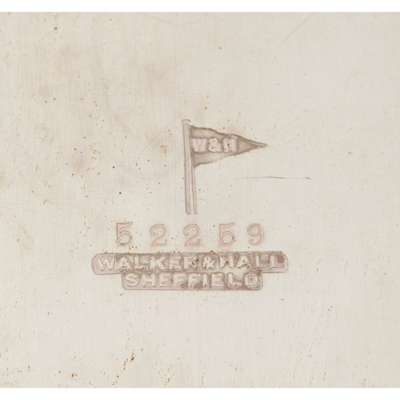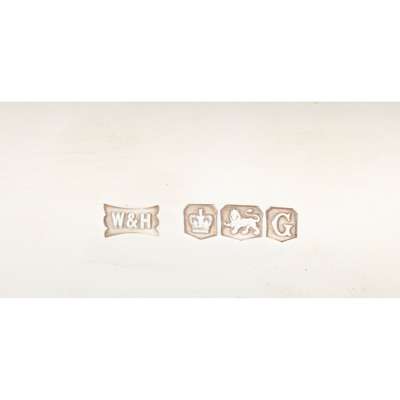 Walker & Hall, Sheffield 1949, of rounded rectangular outline, with beaded borders, the pull-off lid with stylised scroll handles