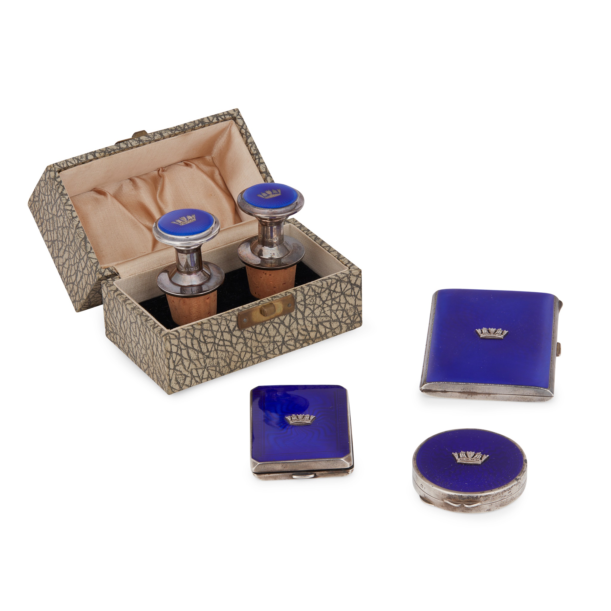 A group of 1930s silver and enamel dressing table items - Royal Navy Internet
