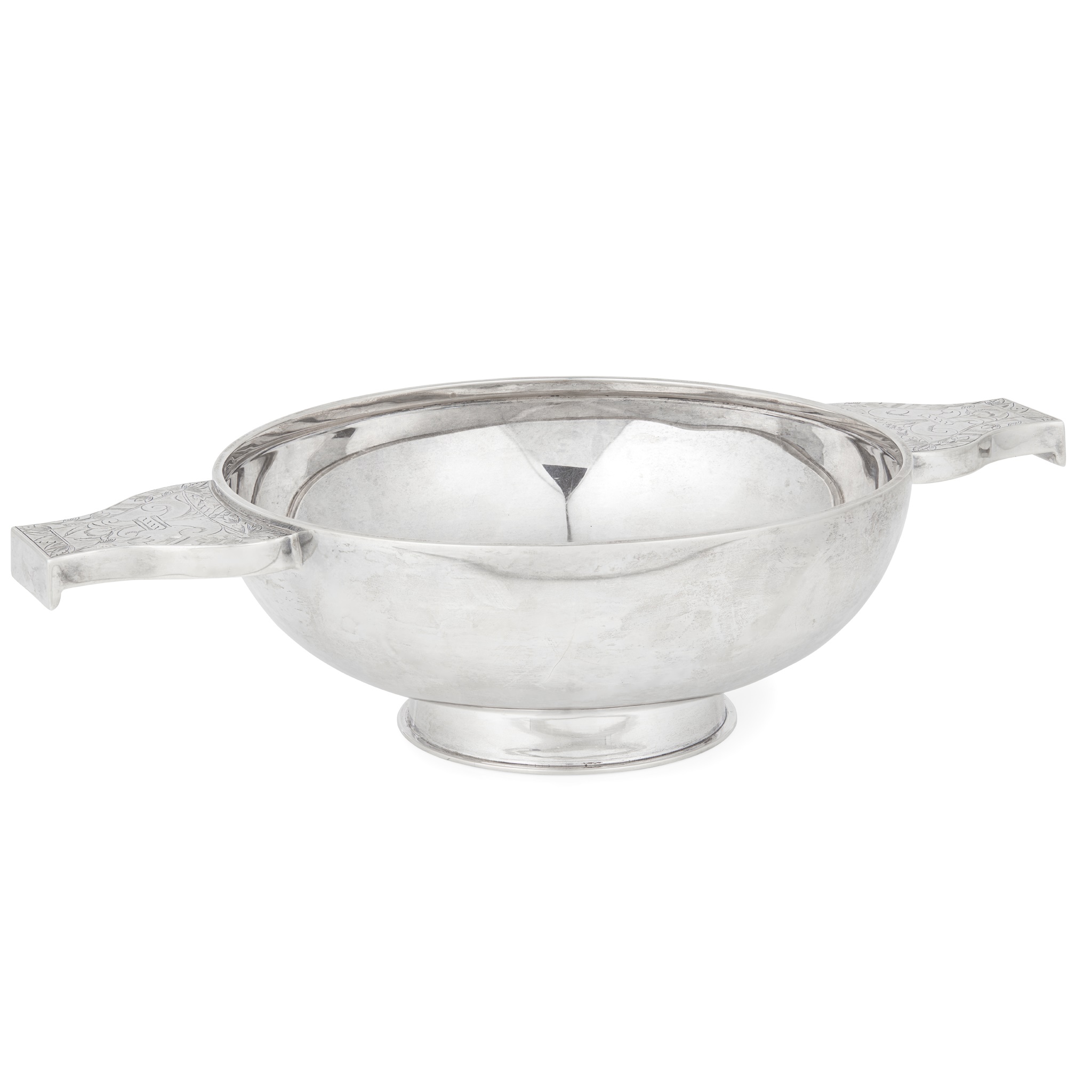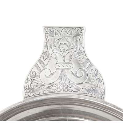P. G. Dodd & Son, London 1927, of traditional form, the waisted lugs with engraved foliate motifs, raised on a circular foot