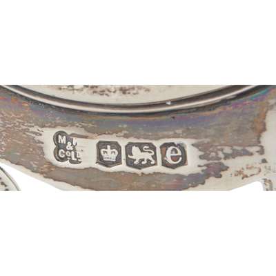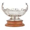 Martin Hall & Co Ltd, Sheffield 1922, of oval outline, the pierced sides with cross-hatch and scroll detail, cast scroll handles, raised on an oval foot, with associated wooden plinth