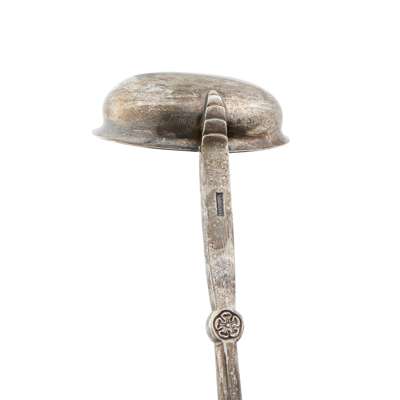 Mackay Cunningham & Co. Edinburgh 1870, the oval bowl with everted rim, the stem of flat section chased with leaves and a rosette to the long tapering circular section stem, anthemion clasped socle with a cast figure of a Roman holding a flagon and cup
