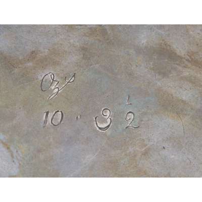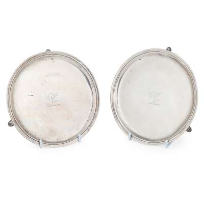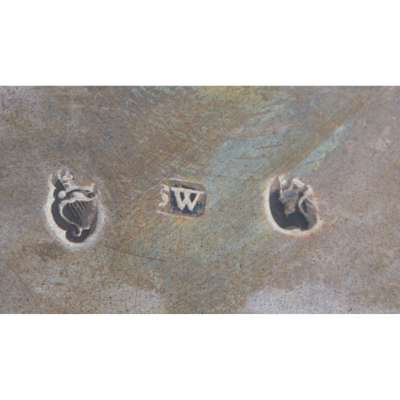 SW, Dublin date letter lacking, of circular outline, threaded border, with crest engraved to centre, each raised on three hoof feet