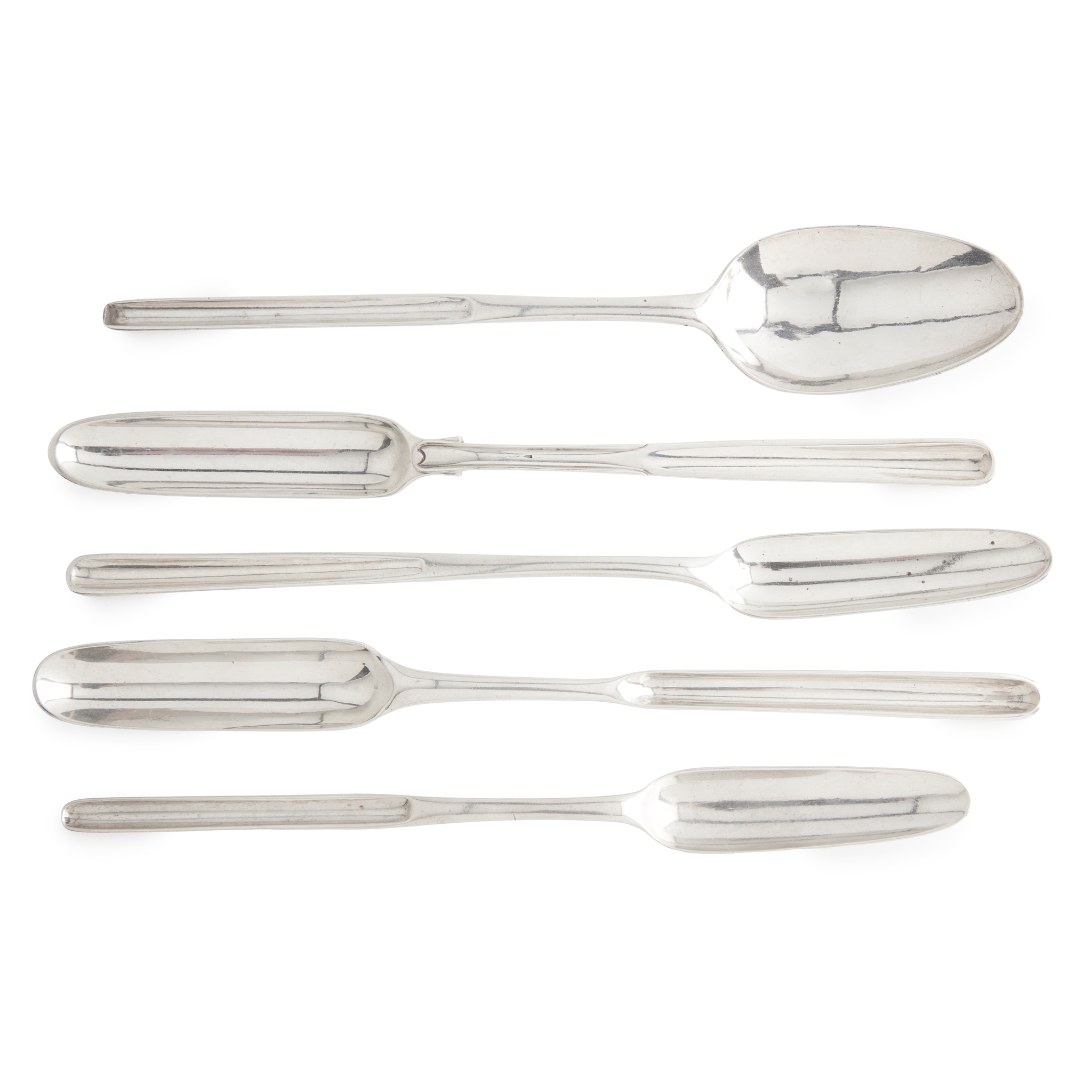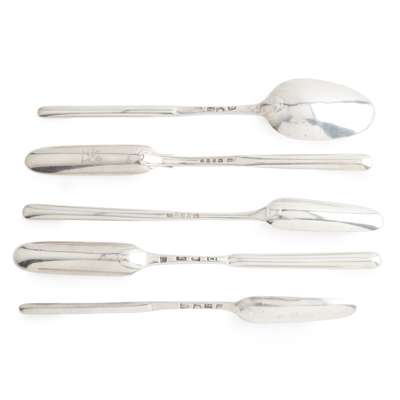 A collection of five George III double-ended marrow scoops