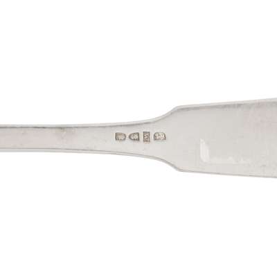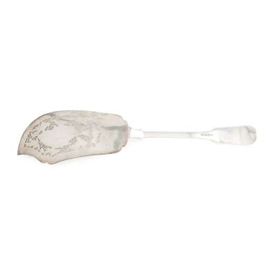 with pseudo-British hallmarks, of Fiddle pattern, the pierced blade with carp detail in a vine border