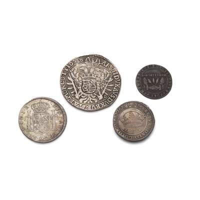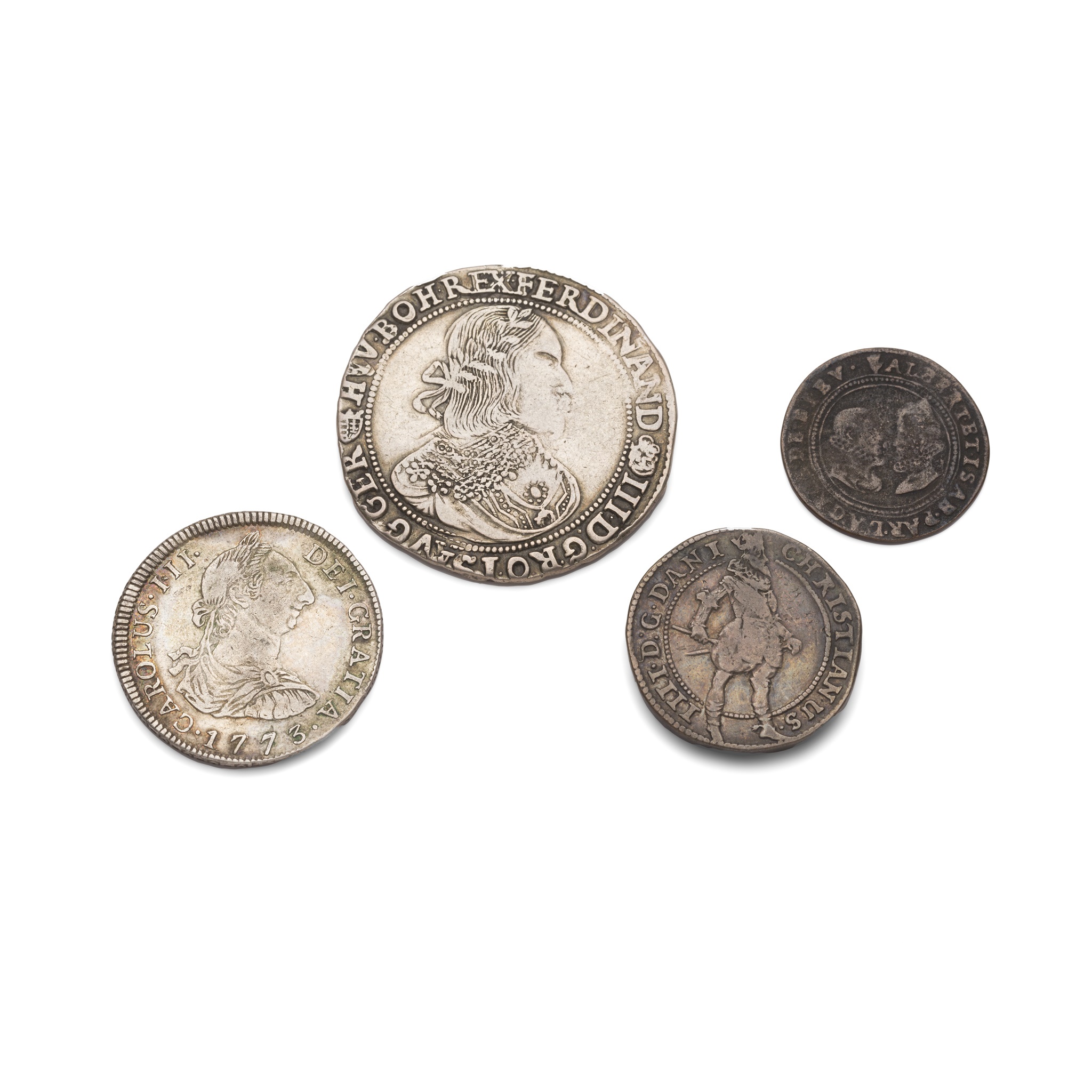 1658, together with a Christian IV of Norway crown 1625; Charles III half dollar 1773 and a base metal Jetton