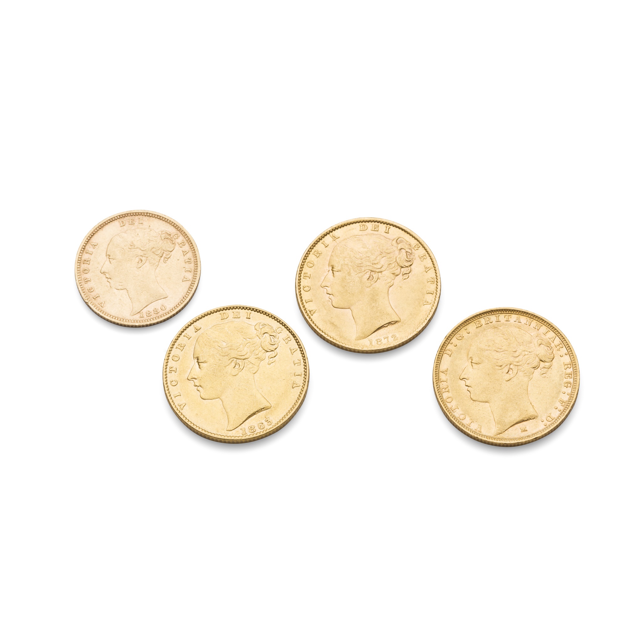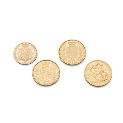 Three Victorian sovereigns and one half sovereign
