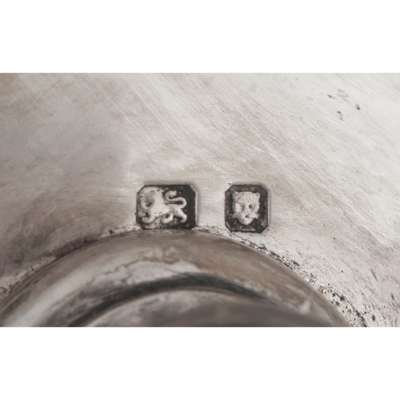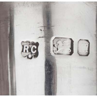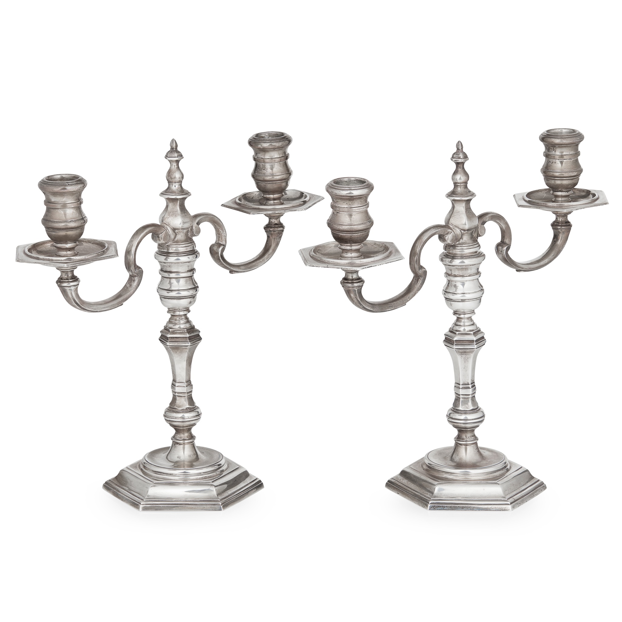 William Comyns & Sons Ltd, London 1967, in the George II style, each with a central knopped baluster stem, to a hexagonal base, each with removable two scroll branches, each with hexagonal drip trays