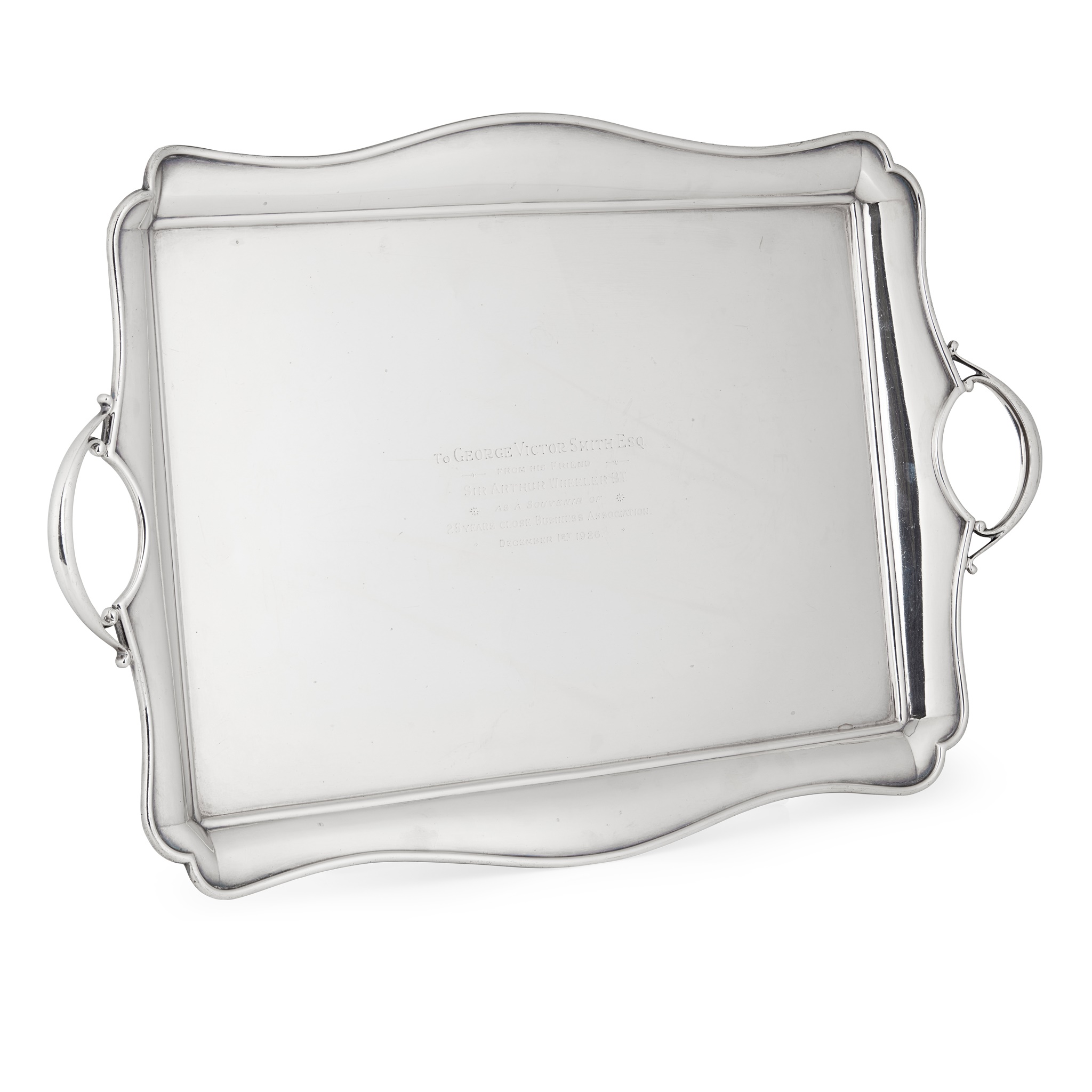 Roberts & Belk, Sheffield 1923, of moulded rectangular outline, with engraved presentation inscription to centre, 'TO GEORGE VICTOR SMITH ESQ/ FROM HIS FRIEND/ SIR ARTHUR WHEELER Bt/ AS A SOUVENIR OF/ 25 YEARS OF CLOSE BUSINESS ASSOCIATION/ DECEMBER 1ST 1926'