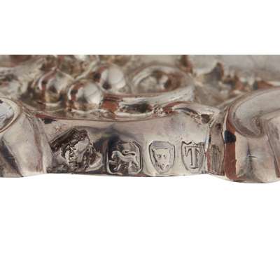 Martin, Hall and Co., London 1894, each of baluster outline, with all over embossed vine and grape decoration, raised on a domed foot of moulded circular outline (loaded)