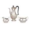Army & Navy Co-operative Society Ltd, London 1887, each of demi-fluted baluster form, crest engraved to upper half of body, leaf clasped C-scroll handles, the coffee pot raised on a domed circular foot, with hinged lid and knopped finial