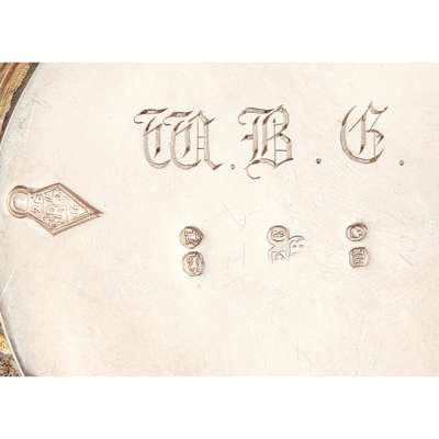 In 1866 Colman’s was granted the Royal Warrant as manufacturers of mustard to Queen Victoria, and only a year later, this mustard was assayed in 1867 by Richards & Brown. George J. Richards had entered in partnership with Edward Charles Brown in 1857 registering a conjoined mark on 13 July 1857. Richards’ father William had also been a silversmith and Brown had been apprenticed to George J. Richards.