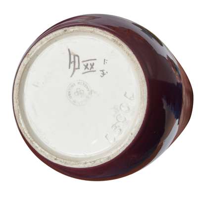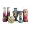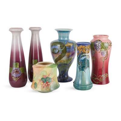 glazed earthenware, painted artist monogram, printed manufacturer's marks, 32cm (12 5/8in) high; together with a MARGARET E. THOMPSON DOULTON VASE, glazed earthenware, painted artist monogram, printed manufacturer's marks, 25.5cm (10in) high; and FOUR FURTHER DOULTON VASES, glazed earthenware, all variously marked, pair of vases 33.5cm (13 1/4in) high; 29cm (11 3/8in) high; 15cm (5 7/8in) high