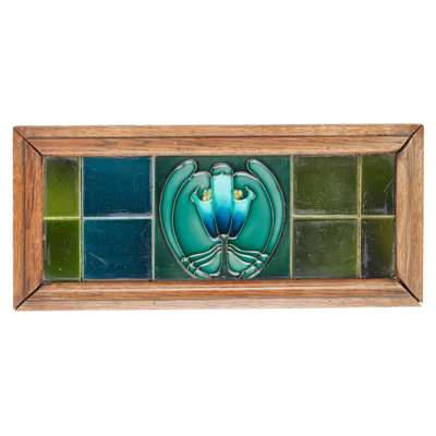 tube lined and block printed earthenware, incised '3337', impressed 'MINTONS' and date cypher for 1902, 23.4cm (9 1/4in) high; together with a MINTONS VASE, 1902-14, tube lined and block printed, impressed 'MINTONS LTD', 33cm (13in) high; a MINTONS EWER, 1908, impressed 'MINTONS LTD' and date cypher for 1908, printed '36', 37cm (14 1/2in) high; and a MINTONS TILE PANEL, glazed earthenware, with oak frame, 14cm (5 1/2in) high, 39.5cm (15 1/2in) long