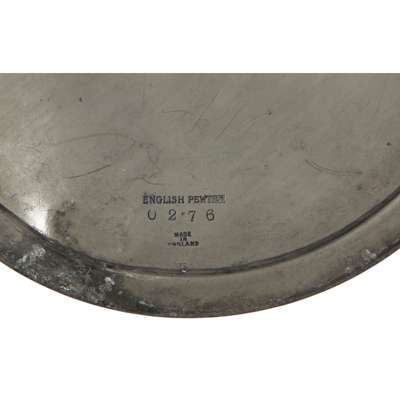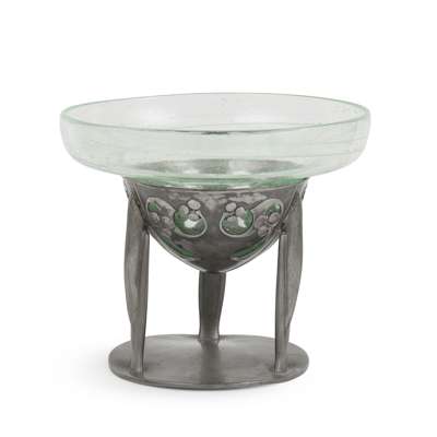 pewter and coloured glass with milky inclusions, stamped 'ENGLISH PEWTER/ 0275/ MADE IN ENGLAND/ 5'