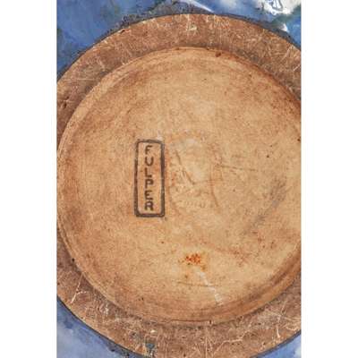glazed earthenware with peacock feather motif, printed 'Fulper'