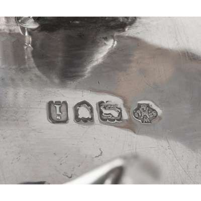 Note: Kate, or Katie, Harris, is broadly considered one of the most important designs for the London-based firm, William Hutton & Sons. From 1899 to around 1905, she produced exquisite designs for artistic silver. Often featured in The Studio magazine, her work received much critical acclaim and is still admired by many collectors today.
