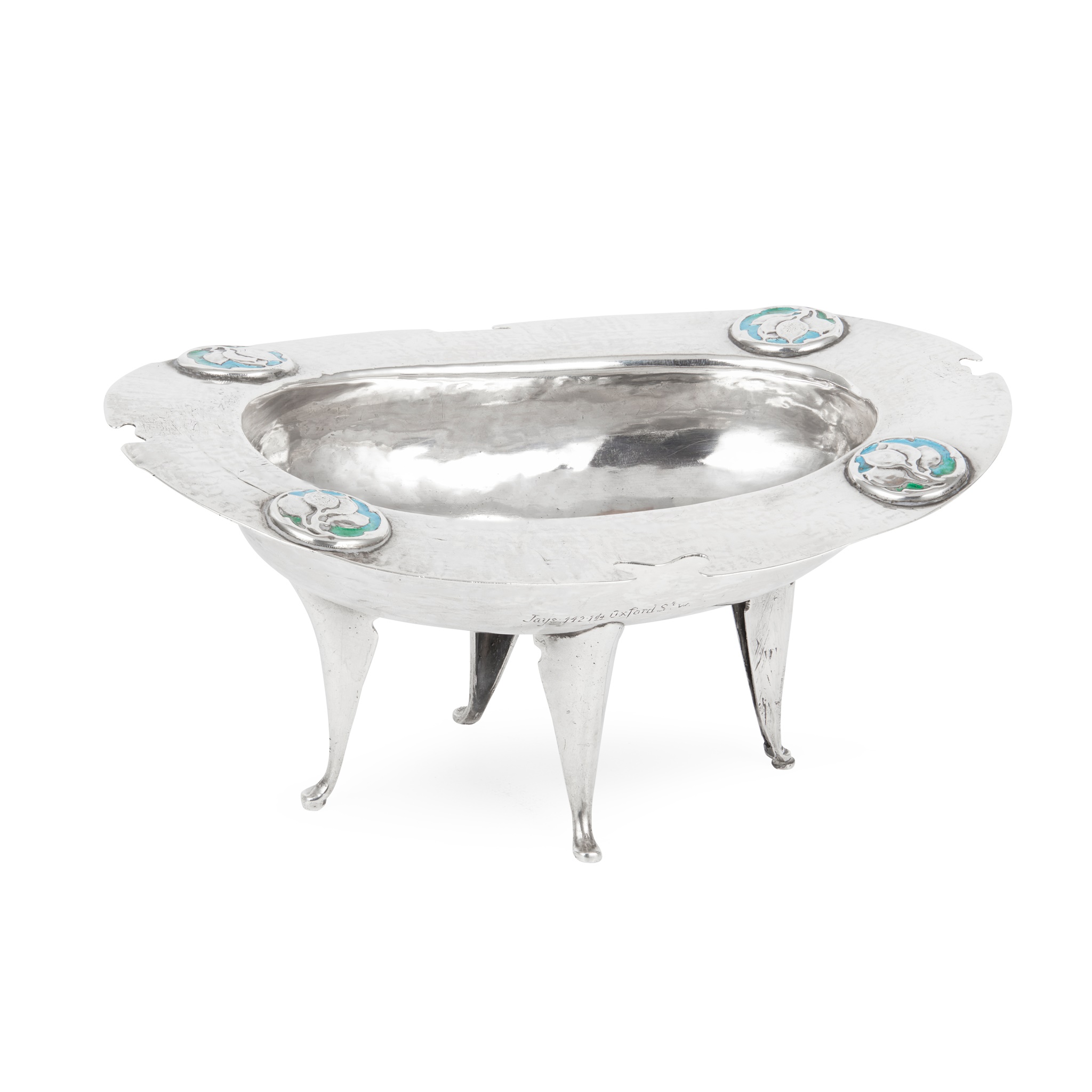 silver, with applied enamel roundels, hallmarked London 1904, inscribed 'Jays 142-144 Oxford St. w'
