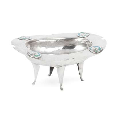 Included in this sale are a number of pieces by Harris at the peak of her career. One such example is an inkstand which she was commissioned to design in 1902 and adopted as one of the prizes issued by the Art Union of London. The Union’s annual report of that year indicates eighteen examples of the inkstand were allocated as prizes. The report also wrote of her design, ‘The charming and original inkstand, designed for the Society by Miss Katie J Harris will be especially noticed…Miss Harris’ future career will be watched with interest’.