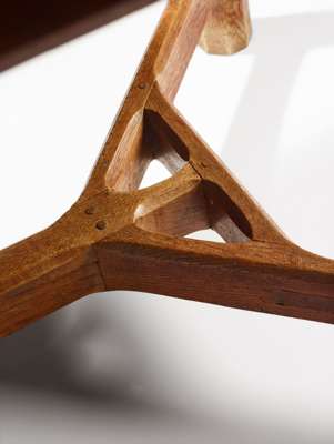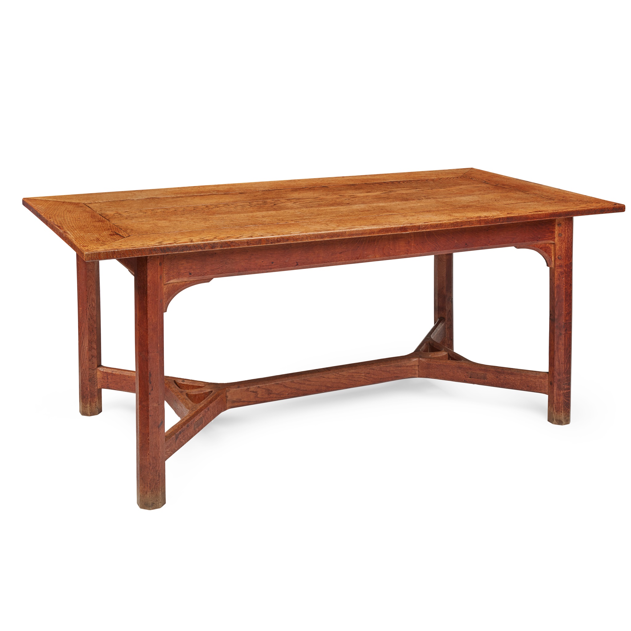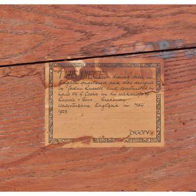 oak, design no.4, bears a label to the underside of the top inscribed 'Dining table in English quartered oak was designed by Gordon Russell and constructed by hand by G. Cooke in the workshops of Russell and Sons, Broadway, Worcestershire England in May 1923'