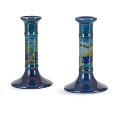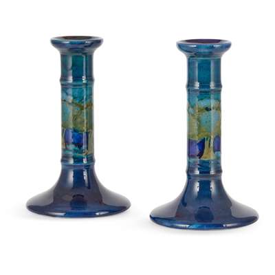 PAIR OF 'MOONLIT BLUE' CANDLESTICKS, CIRCA 1920