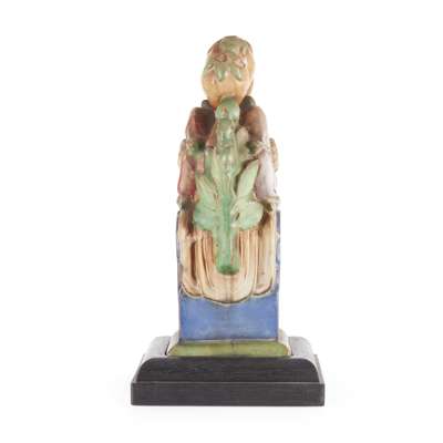 Note: During the 1930s, Gilbert Bayes worked on a community art project for the St. Pancras Housing Association Improvement Society as part of a slum clearance scheme at Sidney Street in Somerstown, north of Euston station, and at other sites across London. The aim was the provision of high-quality homes for the poorest tenants. The society’s architect was Ian B. M. Hamilton, and he designed all the new flats to stand on the cleared land. Since Bayes believed that art should be available to all people, this commission was very close to his heart. He produced relief model lunettes of fairy tale characters, as well as ceramic sculptures and post finials for the washing line posts. The finials were inspired by animals and plants, nursery rhymes, Christmas cards, or the lives of the saints.