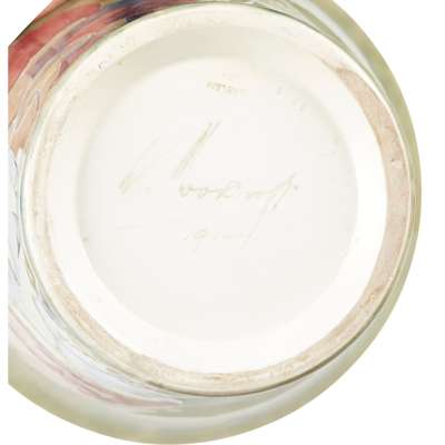 glazed earthenware, painted in green 'W. Moorcroft/ 1914', impressed 'BURSLEM/ 1398/ 1914'