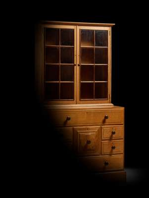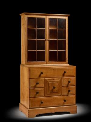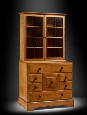oak, Macassar ebony, glazed doors and a central metal-lined filing drawer