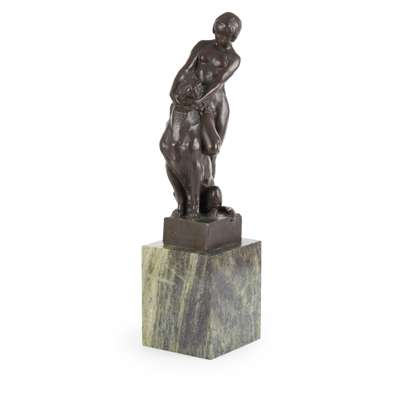 Exhibited: Versions of this figure have been exhibited at the following locations: Edinburgh (1914 (sold 10gns)); Leicester Galleries, Glasgow, Leeds 1916; Bristol 1917; Ridley 1980; Fine Art Society 1918 and 1920; Russell Gallery, Bradford 1990 (sold); Royal Academy, Bristol, 1920; Goupil 1924; Manchester 1928; Rio 1930; Institute 1933 (18gns).