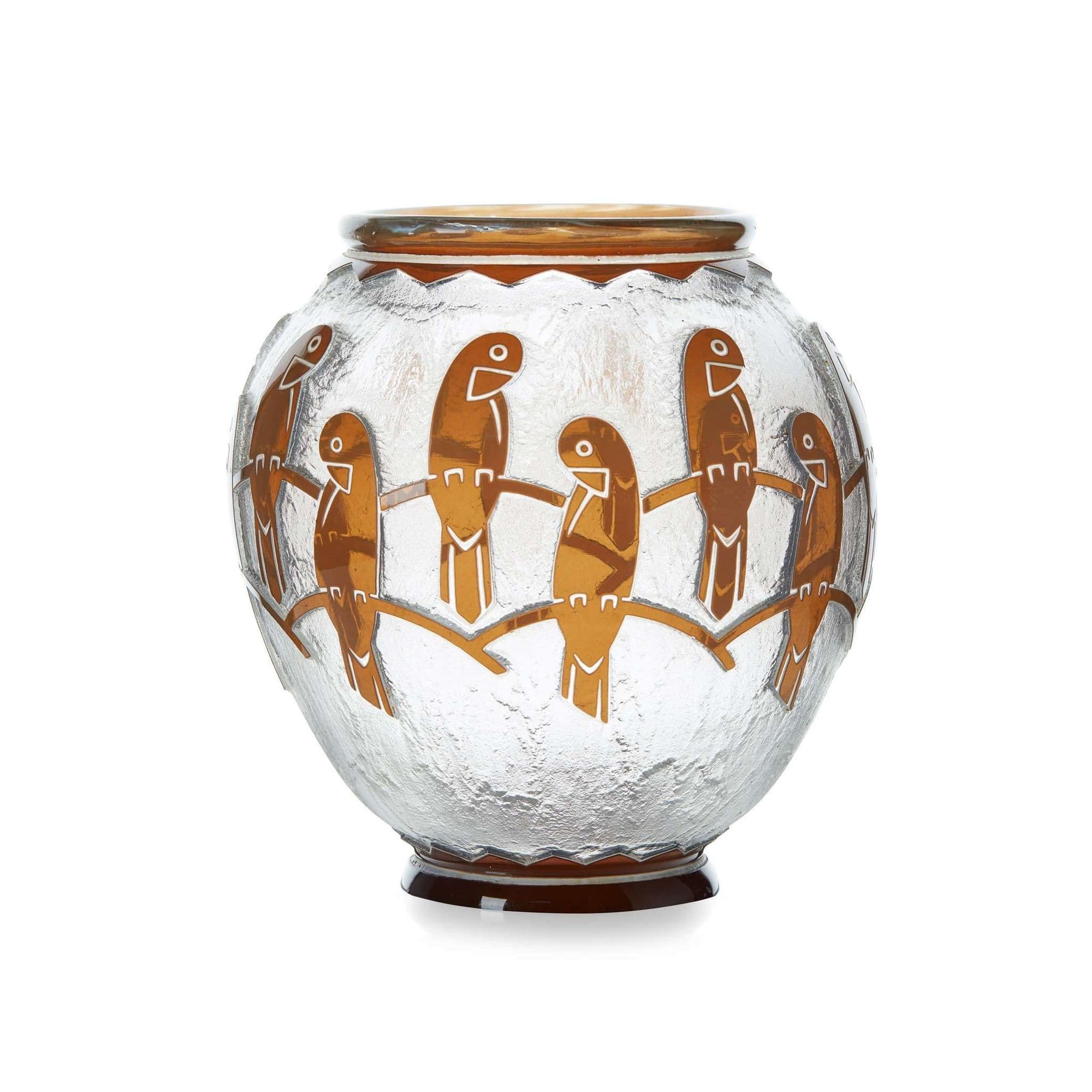 The sale includes furniture, sculpture, lighting, carpets, glass, ceramics, silver, metalwork, jewellery and posters. Work by designers such as René Lalique, Demétre Chiparus, Gabriel Argy-Rousseau, Raoul Dufy, Roger Broders, Gio Ponti, Christofle, Michel Decoux, Georges Lavroff, Josef Lorenzl, Émile-Jacques Ruhlmann, Edgar Brandt, Marcel-Andre Bouraine and Claire Jeanne Roberte Colinet.